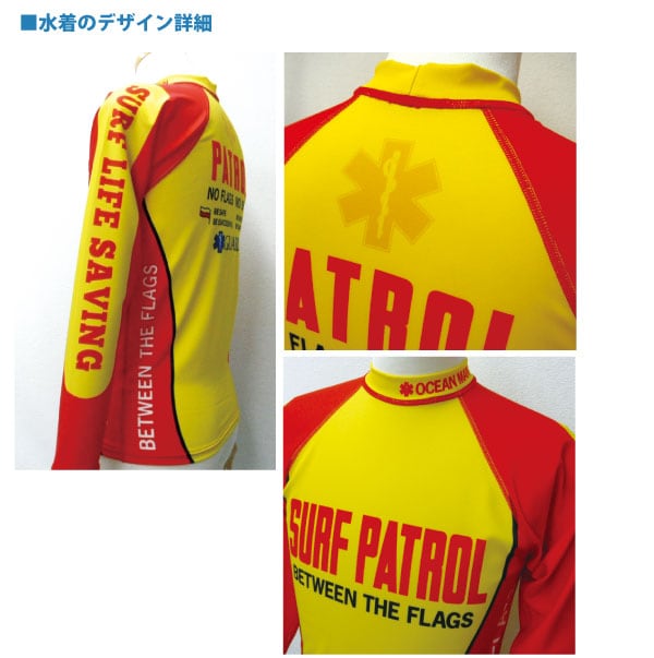 ・両肩にサーフ ライフセービング文字が入っています。
