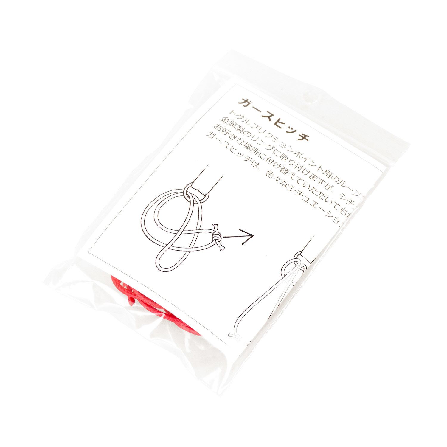 たき火タープに合わせて赤色で作った、Bush Craft Inc.純正のトグルフリクションループです。