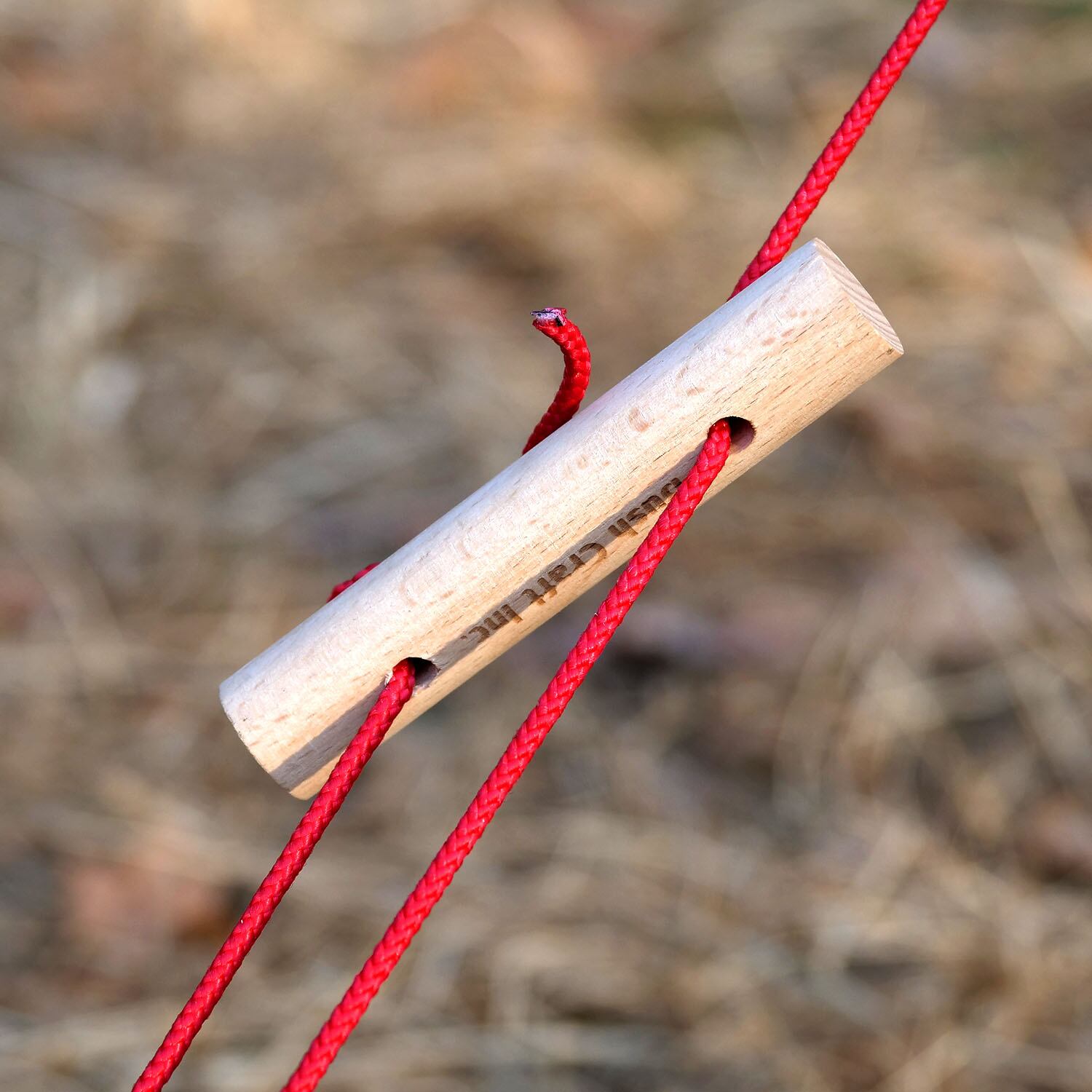 ガイラインの長さ・テンションを調整するための木製スライダーです。