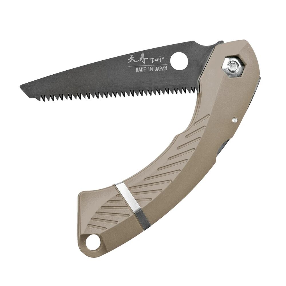では、このポケットブッシュソーの刃は何なのかというと、「剪定用」の刃付けを施された「天寿」ブランドとコラボした刃を採用しています。
