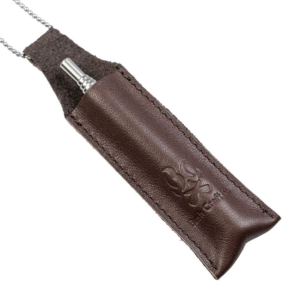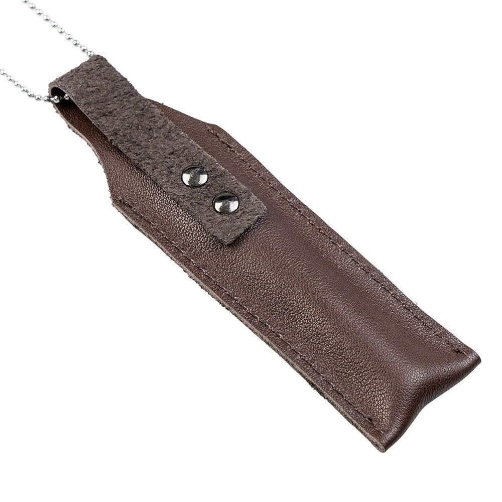 ベルトループのある本革製ケースと、サージカルステンレス製のボールチェーン付きです。
