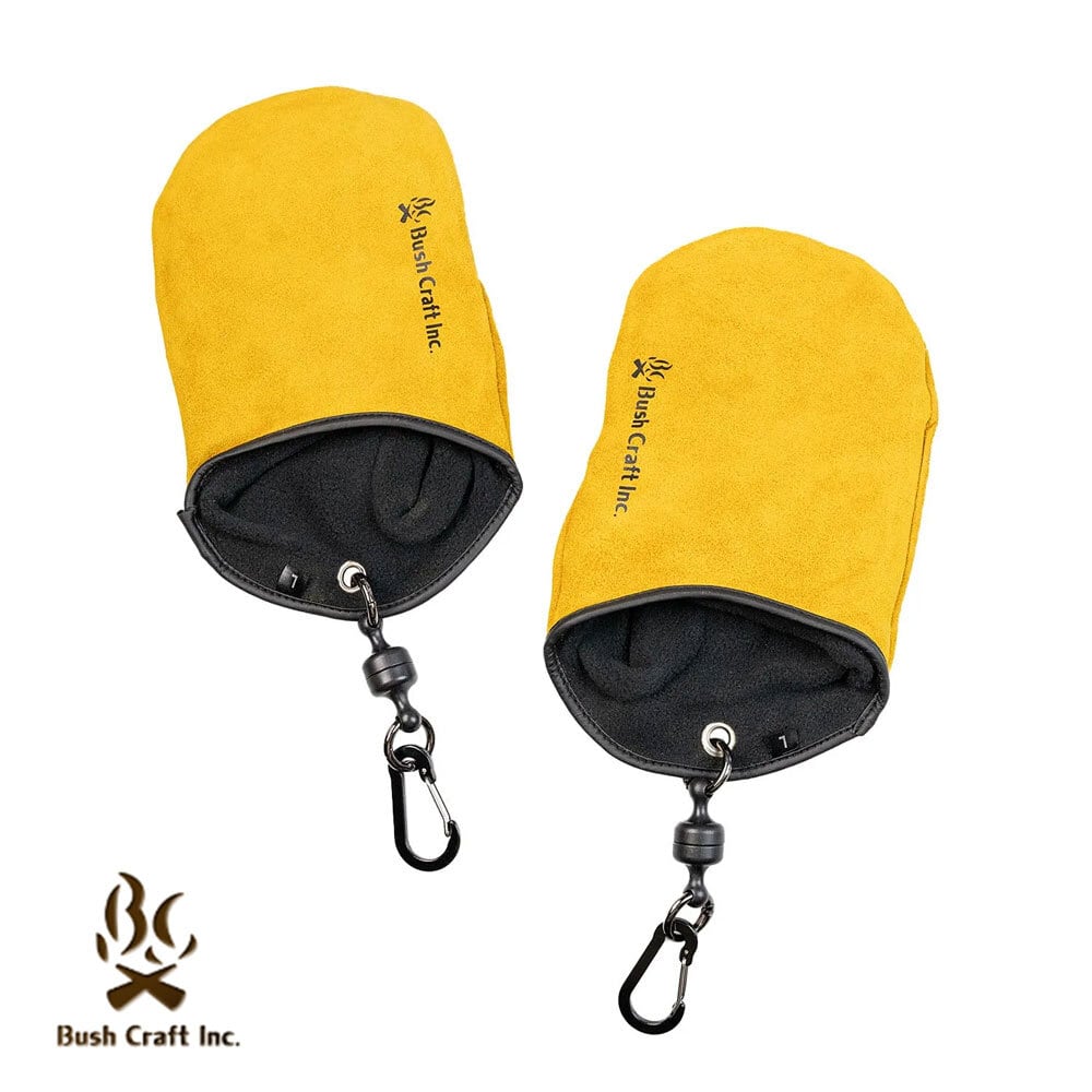 BushCraft (ブッシュクラフト) クイック焚き火ミトン 片手で 簡単 着脱 アウトドア キャンプ グローブ 耐熱 本革 バーベキュー 薪ストーブ BBQ 焚き火台 火起こし