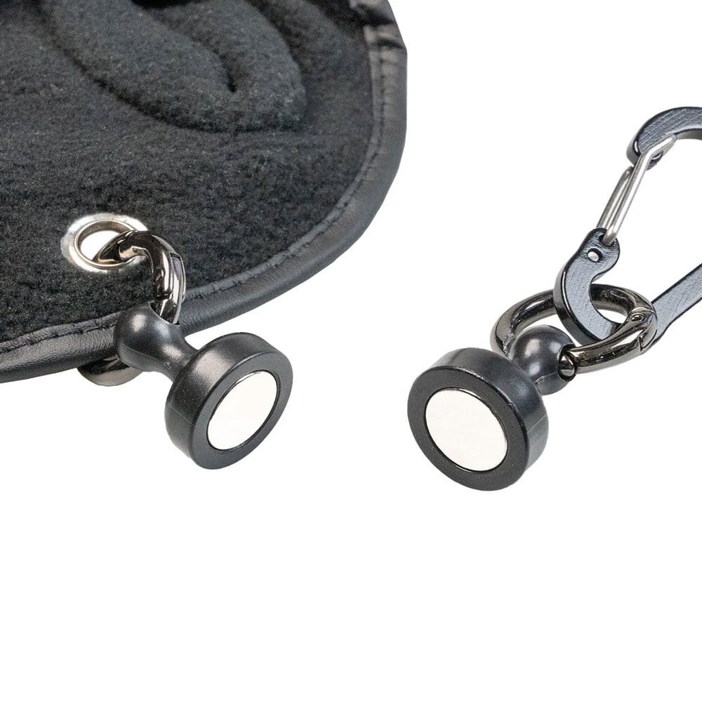 マグネット式のカラビナをベルトやベルトループに固定できるため、
