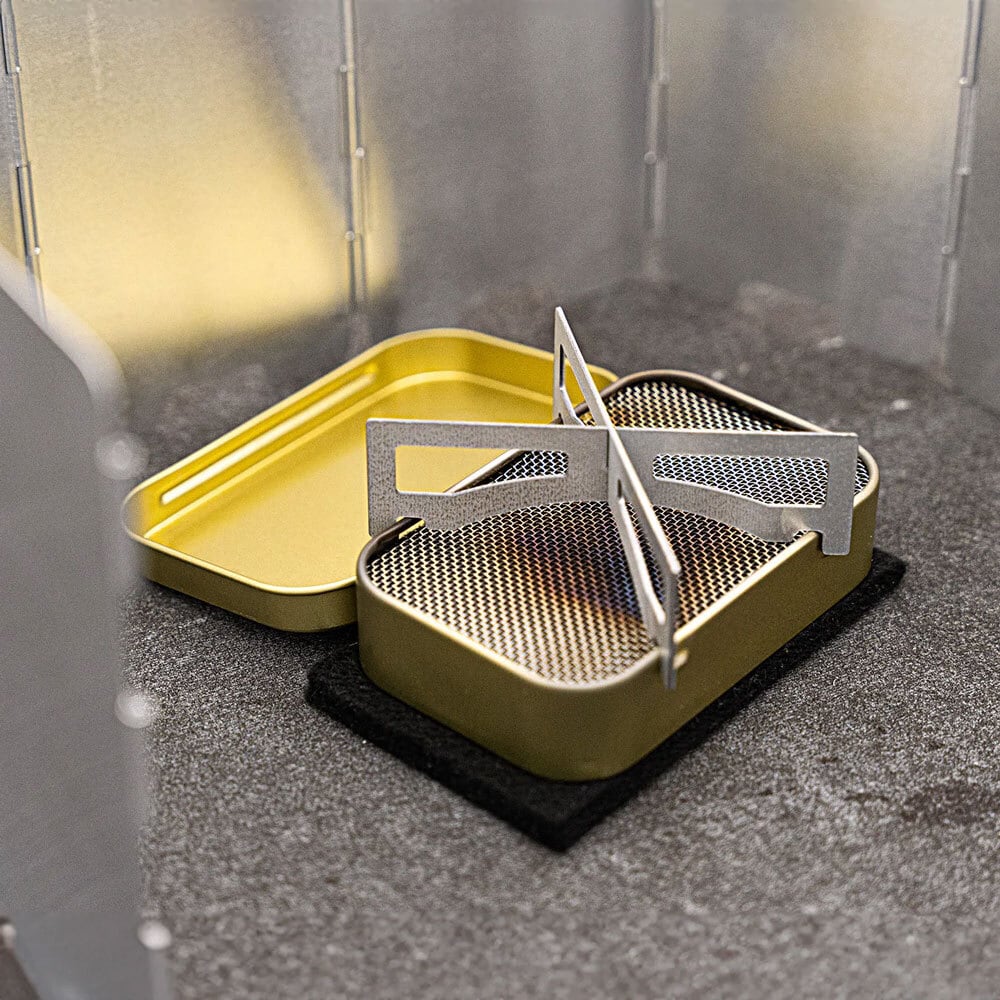 軽量コンパクトで持ち運びやすく、設置・撤収も簡単なポケットサイズのアルコールストーブです。
