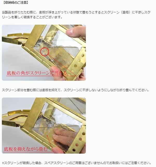 ・当製品に使用されているスクリーンは雲母(マイカ)という天然石でして風合いに個体差があります。工場出荷時から部分的にヒビや不透明な個所があることがあります。