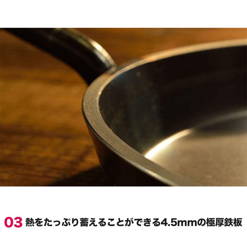 鉄製4.5mm の厚みで重く、扱いにくい商品ですが、この扱いにくさが、食材本来の旨みを引き出します。