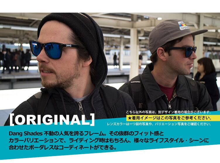 元々「Hang Loose(気楽にいこう)」というハワイのサーフ・カルチャーから始まったスラング(握りこぶしの親指と小指を立てて振るジェスチャー)をもじって、「Dang Loose Shades(めちゃくちゃゆるいカンジのサングラス)」と呼んでいたのを、Looseが抜けて「Dang Shades」というブランド名に。失くしたり壊したりしてもすぐに買い換えられるお手頃な価格で非常に好評なアイウェア。スポーツやフィッシングなどのアクティビティはもちろん、ドライブや買い物など普段使いまで、様々なライフスタイル・シーンまで幅広く、洋服を着替える様に気軽に使える遊び感覚に溢れたモデルが続々登場しています。