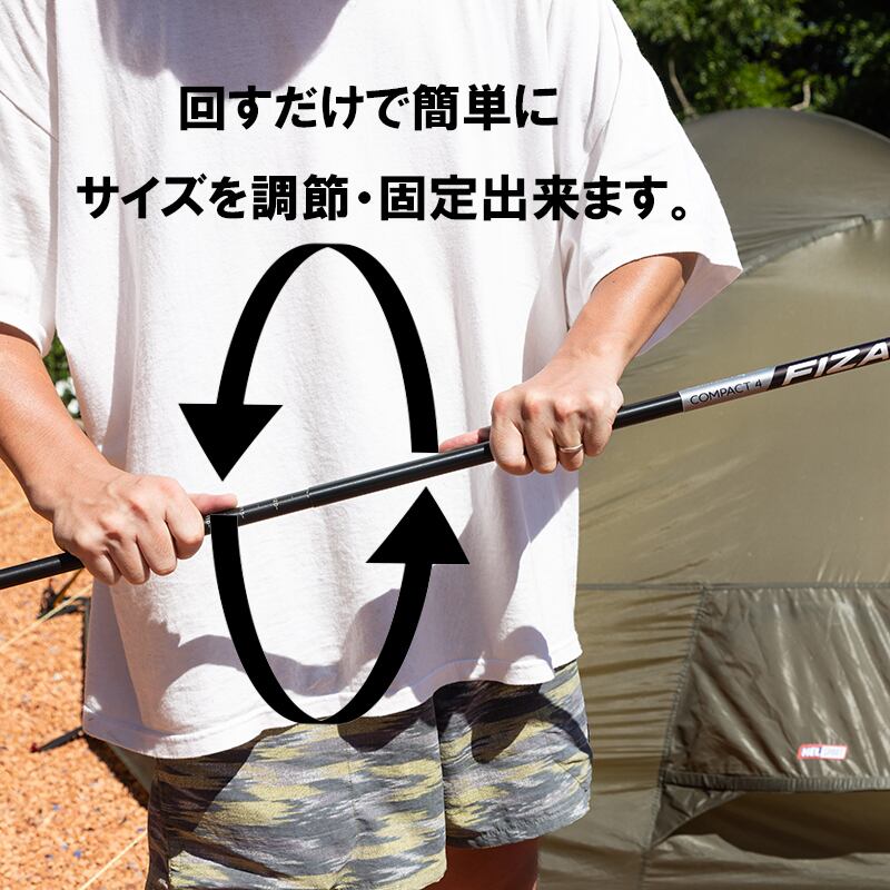 回転させるだけで、ポールの長さを固定する独自の内部ロックシステムを採用。