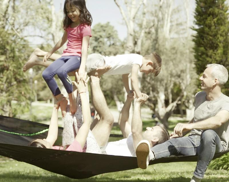 ストラップを追加してつなぐと聞きの木々の広い場所でも設置が可能です。