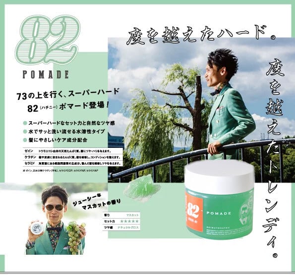 ● 73ポマードよりスーパーハードなセット力、八二スタイルやオールバックが出来ます。