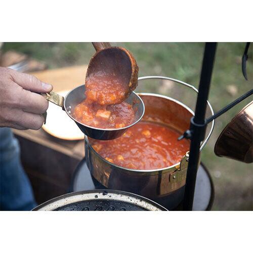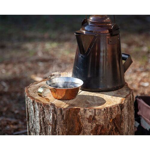 キャンプシーンでは、調理器具として、おたま、コップ、食器代わりなど様々に活用できます。使い込むほどに風合いを増すコッパーは、キャンプサイトの雰囲気を高めてくれます。オプション(別売)のコッパーシェラカップ リッド400を合わせることで、炊飯、蒸し調理などレシピの幅が広がります。また、早くお湯を沸かしたい時や、料理や飲み物を入れた時のホコリ避けにもなります。コッパーシェラカップ400で3/4合のお米が炊けます。