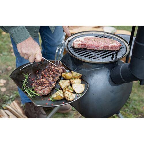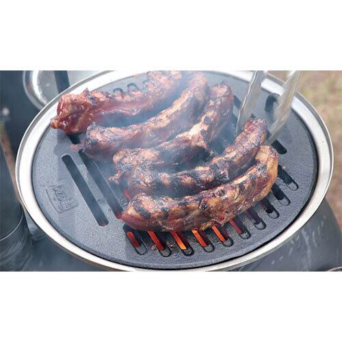 グリルを使用することで余分な油が落ち、食欲をそそる焼き目が付きます。薪の香ばしい香りも加わって最高の味わいに!