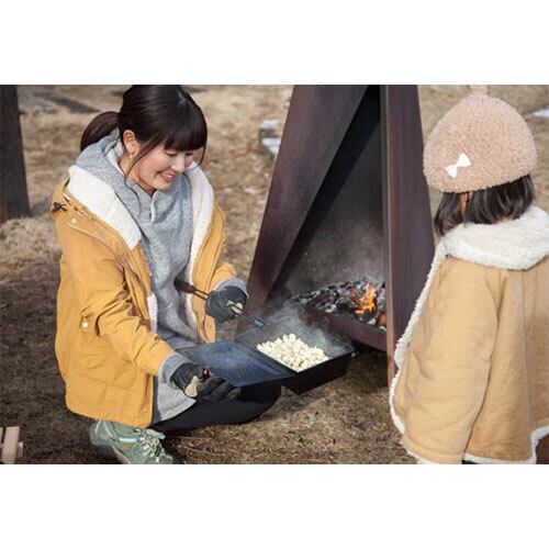 たき火で楽しむ、アウトドア用ポップコーンポッパー。必要なのは少量の油とコーン、そしてわずかな時間だけ。アウトドアで誰でも手軽に本格的なポップコーン作りが楽しめます。42 ㎝のハンドルに木製のグリップを備えています。たき火の上で振って使用します。保管や持ち運びする時は、ハンドルをポッパーの中に入れてコンパクトに収納。焦げ付き防止コーティングでお手入れも簡単です。