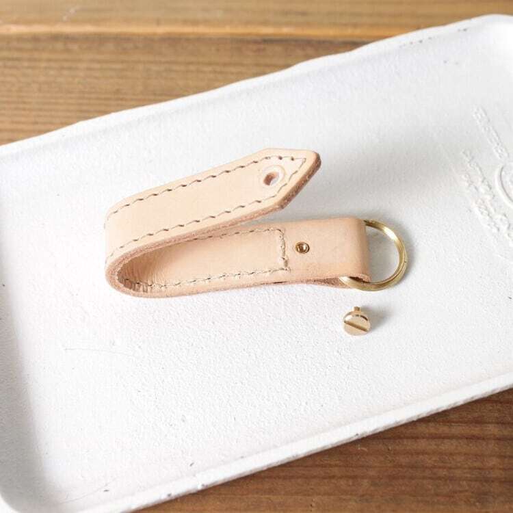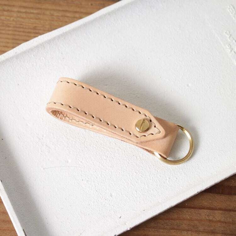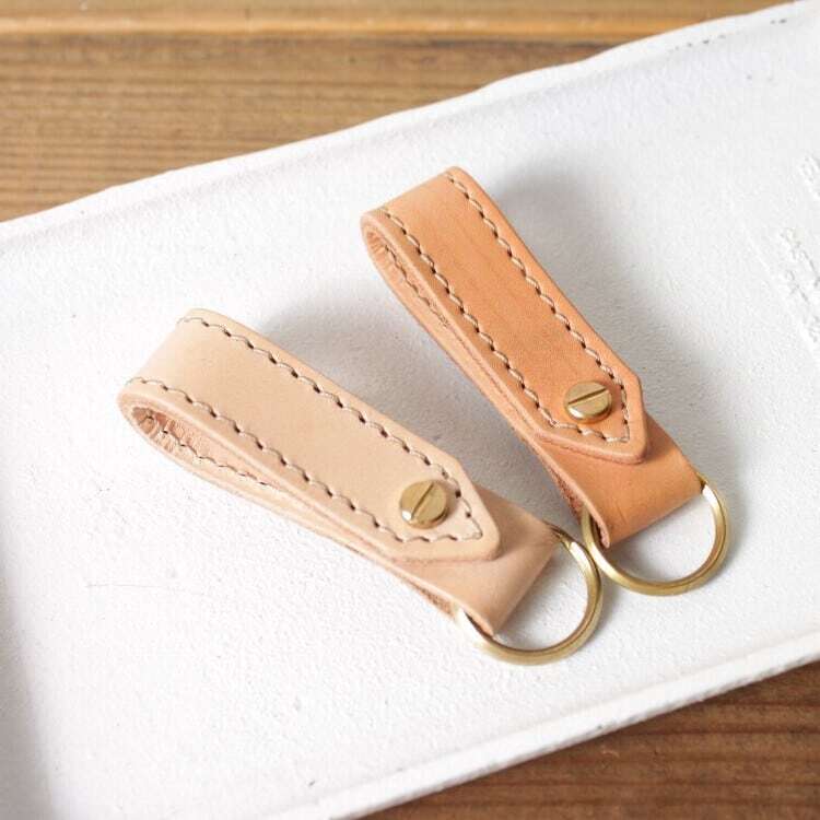 「組ネジ」や「シカゴスクリュー」と呼ばれる真鍮素材の金具を使用したシンプルなキーホルダー。