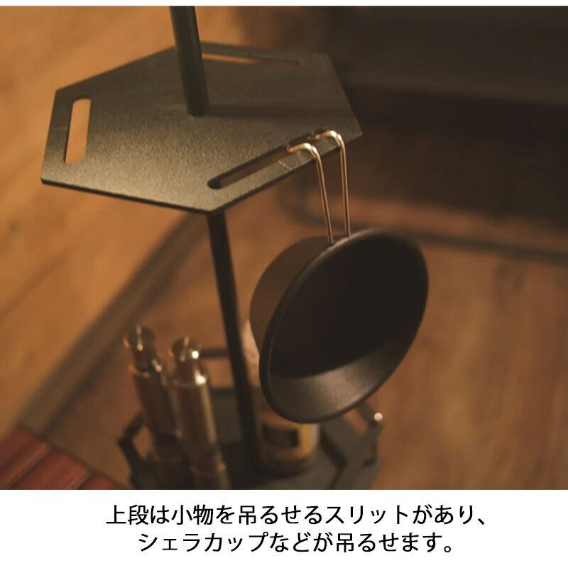 スタンドのジョイント部分にプレートを挟み、小物を置くことが可能。