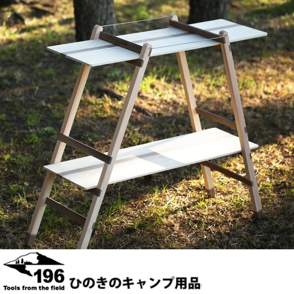 196ひのきのキャンプ用品 ウッドダブルラック 土佐ひのき キャンプ用品 収納棚 アウトドア 木製2段ラック 196hinoki-001