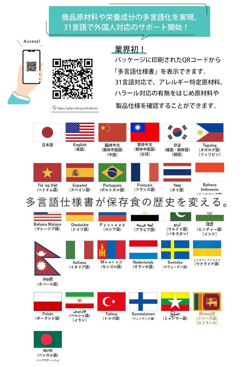 調理不要・食物アレルギー対応・ハラール認証取得・世界30言語対応。