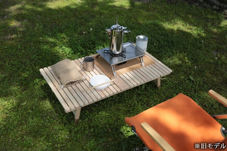 ブルーリッジ(BlueRidge)チェアーやBYER(バイヤー)メイラウンジャーが一番使いやすいロースタイルキャンプ用土佐ひのきのウッドテーブルです。